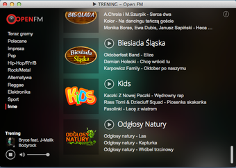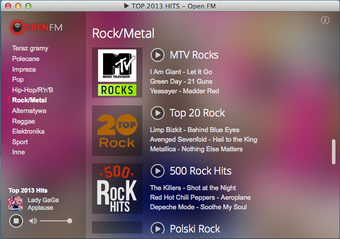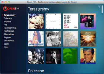 Open FM to radio internetowe stworzone przez twórców Gadu Gadu. Open FM na Mac oferuje ponad 80 stacji radiowych z bardzo różnorodną muzyką, wśród której każdy znajdzie coś dla siebie. Wiele stacji puszcza tylko polską muzykę, której nie znajdziemy nigdzie indziej. Aplikacja uruchamia się w małym okienku. Z boku mamy menu z listą stacji radiowych. Kliknąwszy przycisk "play" zaczyna grać muzyka. Słuchając jej nadal mamy możliwość przeglądania innych stacji radiowych. Prostota oraz duża liczba różnorodnych stacji radiowych to największe zalety radia Open FM na Mac.