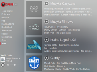 Open FM oferuje zarówno radio internetowe disco polo, radio Viva Polska, radio MTV, jak i stacje z ciężkim brzmieniem, czy grające 100 proc. utworów Kazika Staszewskiego, zespołu Dżem lub Depeche Mode. Dla każdego znajdzie się coś do posłuchania. Radio może okazać się szczególnie przydatne, gdy zbliża się impreza, a my nie mamy czasu kompilować odpowiedniej składanki. Stacja Open FM Impreza dostarczy odpowiednio imprezowej muzyki.